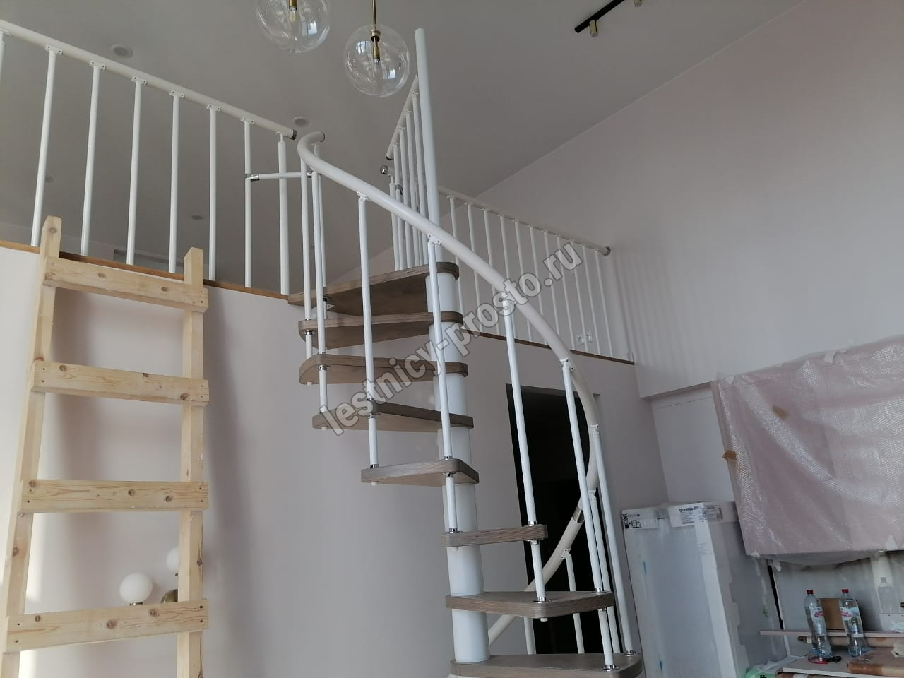 | Винтовая лестница Prosto Spiral White D120см, h325.7-369.8 см, бук |