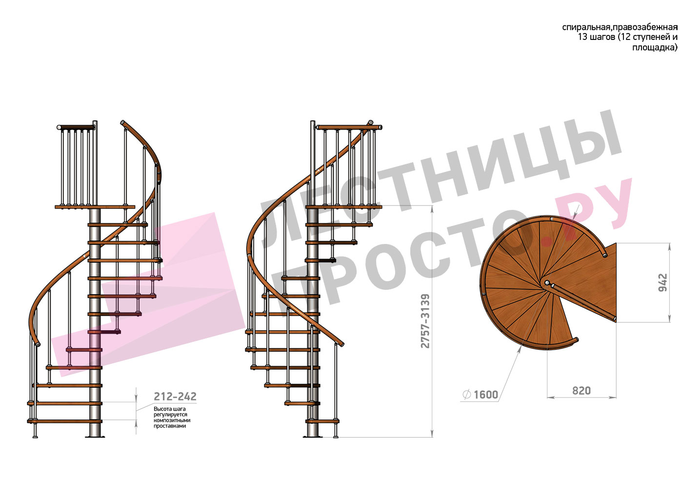 | Винтовая лестница Prosto Spiral White D160см, h275.7-313.9 см |