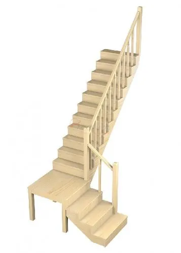 Лестница представлена в двух вариантах: с поворотом направо и с поворотом налево. Благодаря возможности регулировать высоту шага с помощью пластиковых вставок (входят в базовый комплект), высоту лестницы можно варьировать в пределах от 2860 до 3090 мм. Кроме того, купив дополнительную секцию для этой лестницы, можно поднять высоту до 3320 мм. Поручень изготовлен из массива бука в тон ступеням. Ступени и поручень покрыты износостойким защитным лаком.