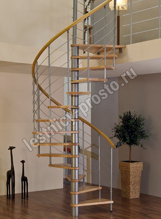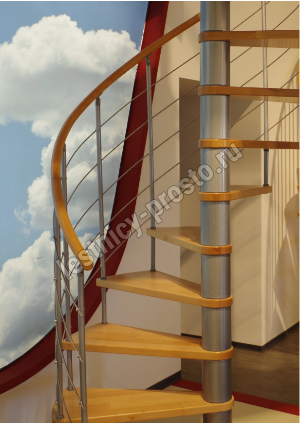 Винтовая лестница Venezia d160 см, серебро, бук лакированный