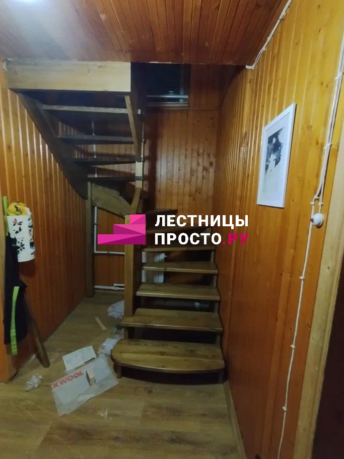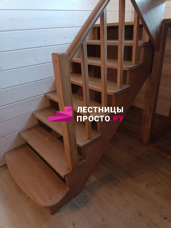 Г-образная лестница из сосны для частного дома ЛС-07/4